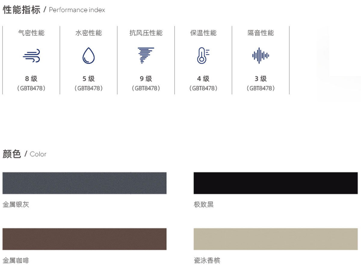 • 兼具平開窗外觀與密封性能, 推拉窗的實用性, 承重滑輪+導向輪結構, 雙重作用防脫軌, 保證安全性;