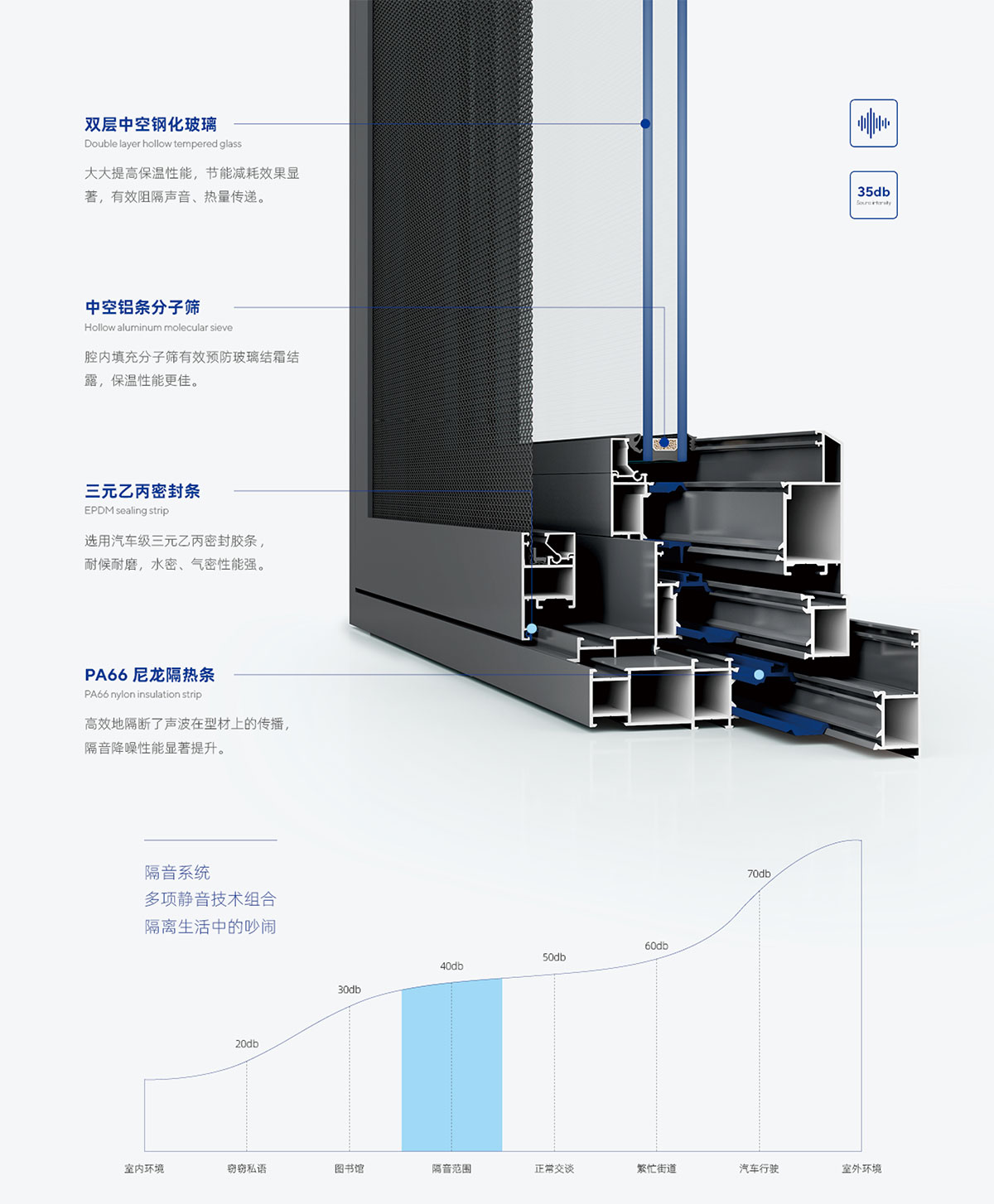 • 固定玻璃采用中間密封結構 , 杜絕扣條漏水隱患, 氣密、 保溫、 隔聲同步提升;